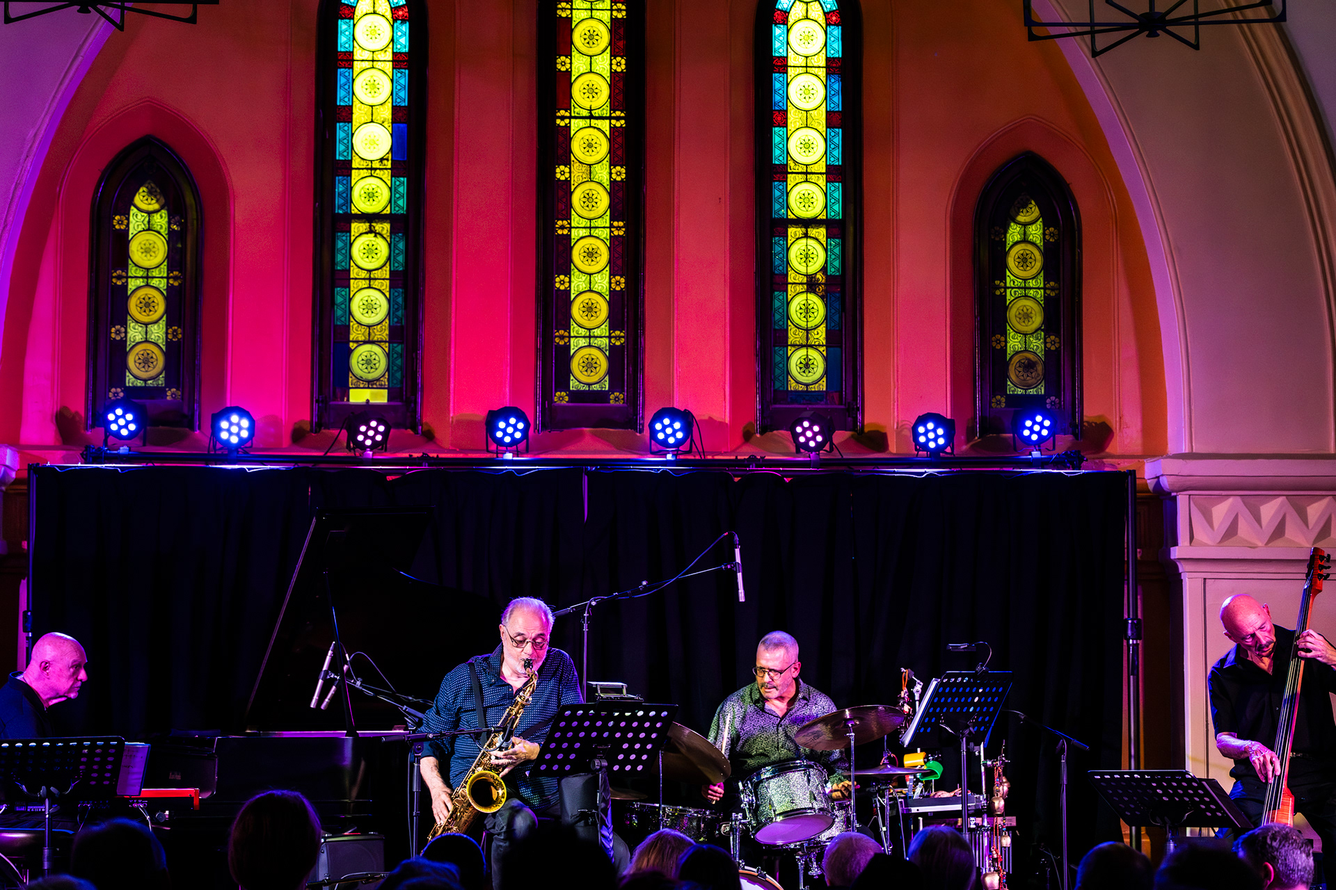 The Levin Brothers at The Local. Saugerties, NY. May 17th 2025. Pat Labarbera on tenor saxophone; Jeff "siege" Seigel on drums; Pete Levin keyboard and piano; Tony Levin on base.